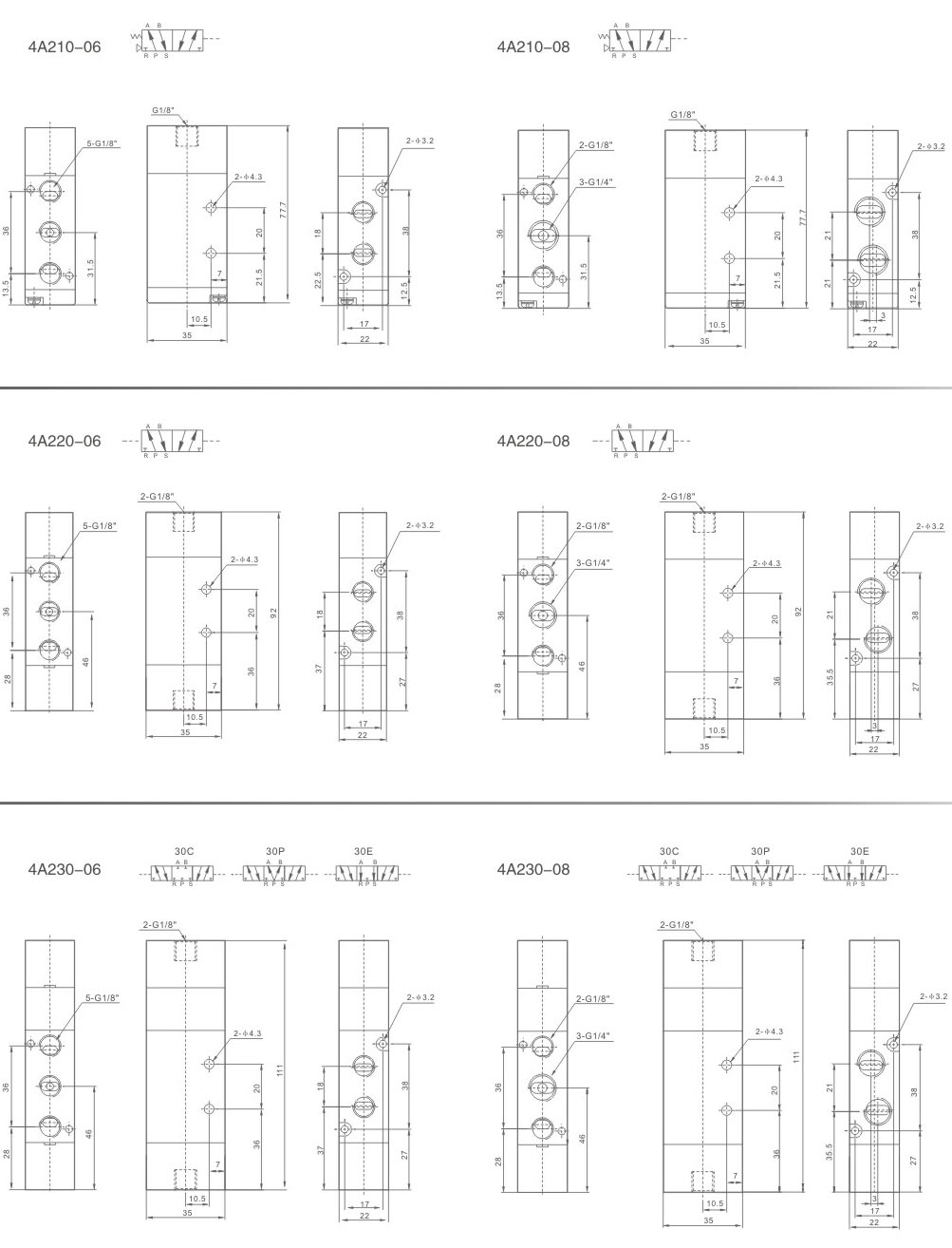 進(jìn)氣=出氣=G1/4” 排氣=G1/8”