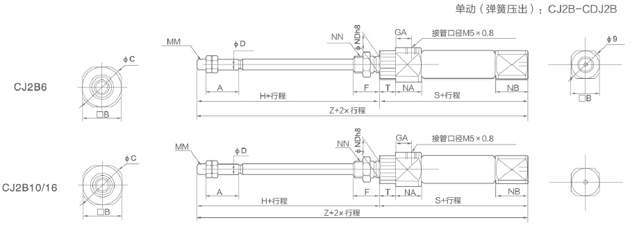單動(dòng):彈簧壓回/彈簧壓出 |